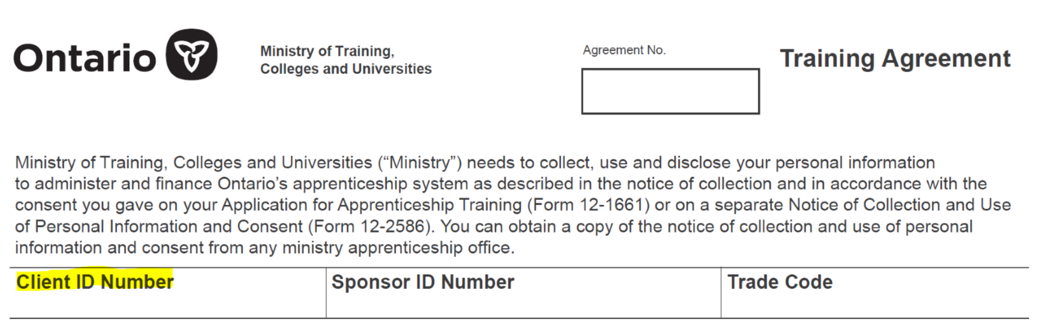 - Active Registered Training Agreement (RTA)